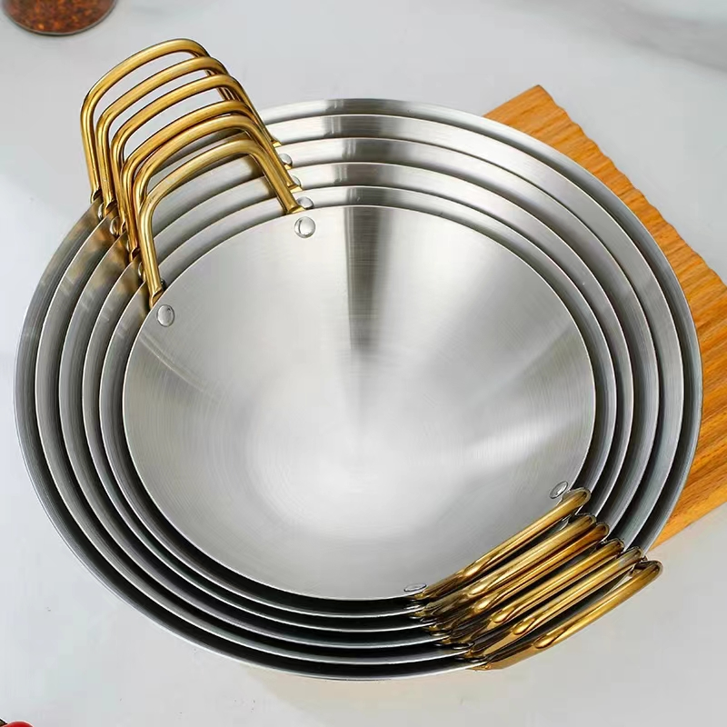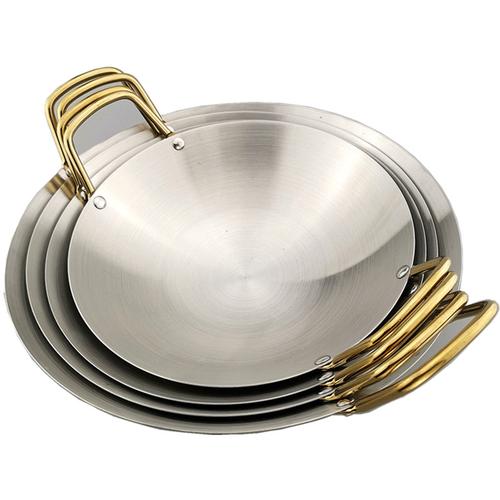Stainless Steel Wok Stir Fry Pans Round Bottom Wok Traditional Wok Pan Household Wok with Wooden Handle