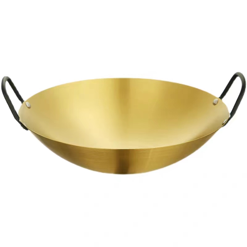 Stainless Steel Wok Stir Fry Pans Round Bottom Wok Traditional Wok Pan Household Wok with Wooden Handle