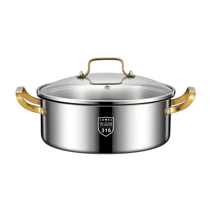 Stainless Steel Kitchen Pot, Tabletop Pot, Double Handle Cooking Pot with Lid with Handle, Cooking Pot Convenient Cookware, Wok, Stew, Restaurant Kitchen Tool