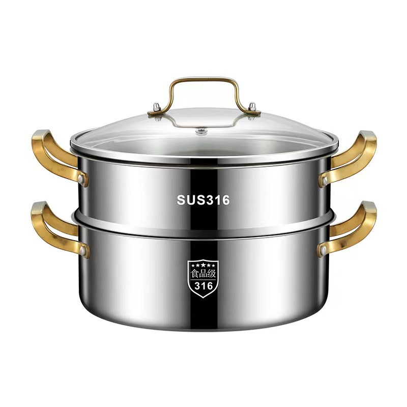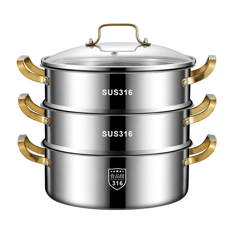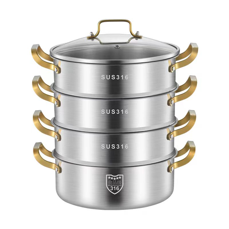 Set Soup Pan Sauce Pan 5- Layer Stainless Steel Steamer Pot Steaming Cookware Saucepot with with Tempered Glass Lid 30Cm Steamer Pot Seafood Steamer