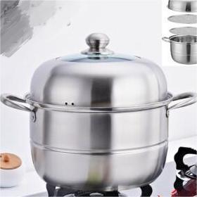Stainless Steel Kitchen Pot, Tabletop Pot, Double Handle Cooking Pot with Lid with Handle, Cooking Pot Convenient Cookware, Wok, Stew, Restaurant Kitchen Tool